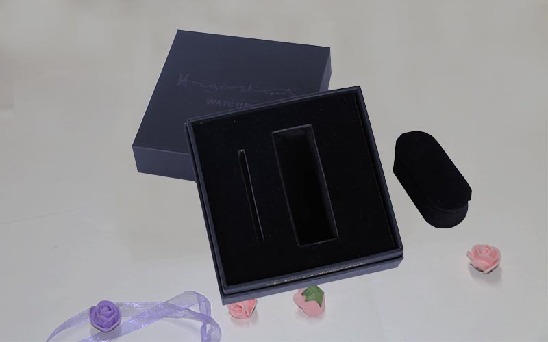 1.手表包裝盒定制-材質 :盒子表面採用高仿皮質特種紙裱1800G雙面白雙灰闆,表面燙金或者是擊凸文字LOGO,盒内内托採用EVA和珍珠棉這是最常見的,需要更高端的内托可以用植絨或者是絨布都可以,盒型爲翻蓋盒和抽屜盒,手表比較高檔盒子制作精細